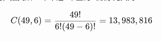 - 结果:13,983,816(精确值,可用Excel函数COMBIN(49,6)验证)。