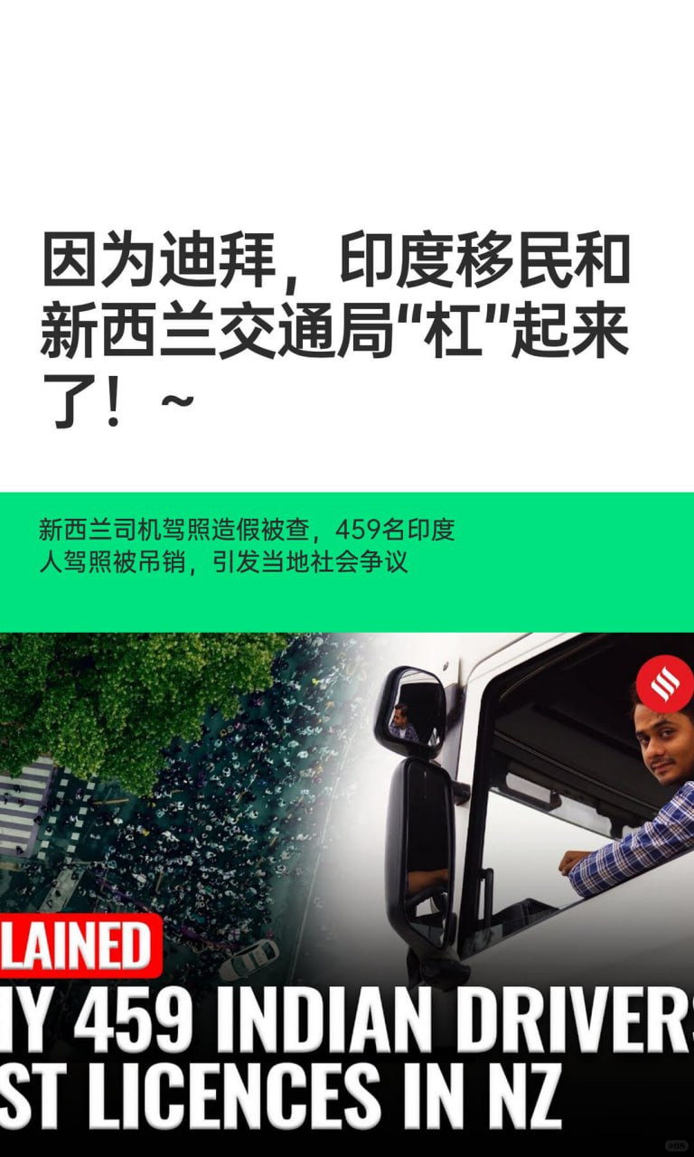 新西兰交通局因“迪拜假证明信”事件一次性吊销459名印度裔司机重型驾照