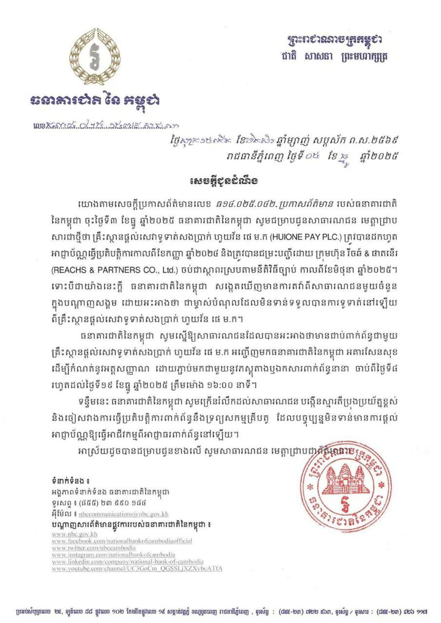 根据国家银行的详细说明,汇旺支付的经营执照早在2024年9月已被正式吊销,此后于2025年6月通过法律程序完成清算,由专业机构Reachs & Partners Co., Ltd.负责执行,整个清算过程已于近期正式宣告终结。在此期间,国家银行监督了相关资产处置和债权处理工作,确保符合柬埔寨金融法规的要求。然而,近期国家银行监测到社交媒体平台上出现多起公众帖文,声称自己作为汇旺支付的债权人尚未收到应得款项。这些反馈反映出部分个体可能因信息不对称或程序延误而未能及时获偿,促使当局采取进一步干预措施。